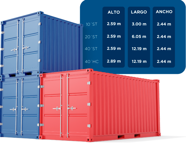 Contamos con contenedores nuevos y de segundo uso de 10´St, 20´ St, 40´ St y 40´ Hc.